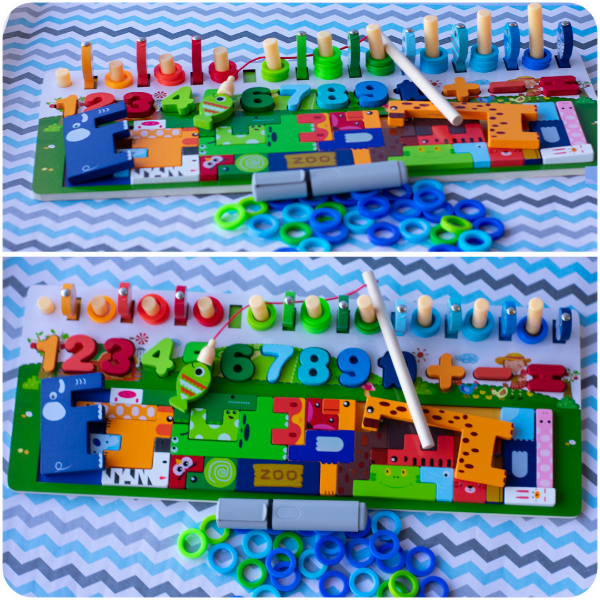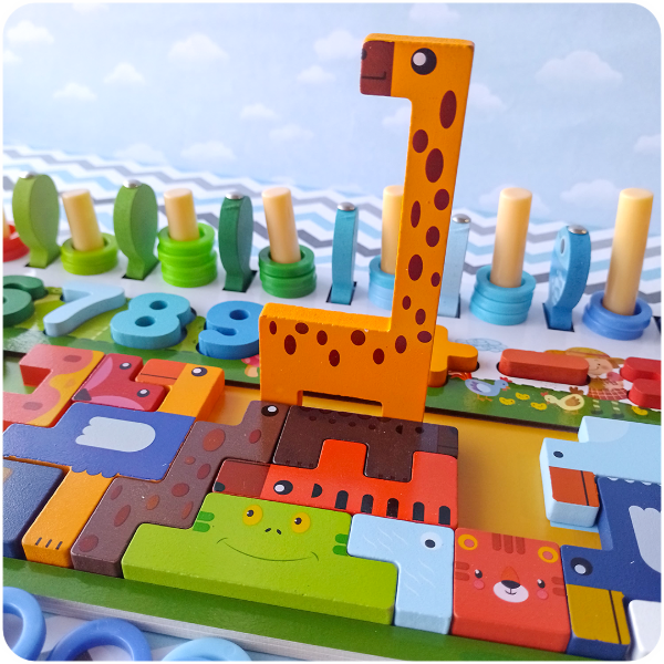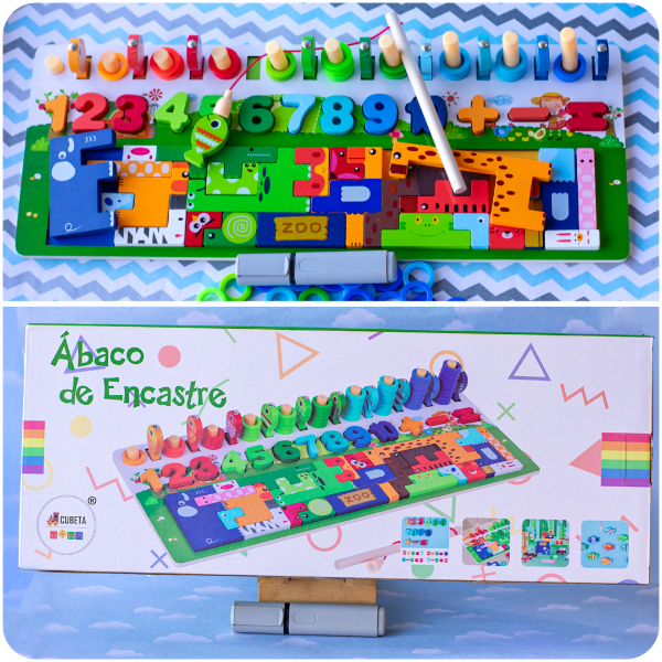 Aprender nunca fue tan divertido como con el Ábaco de Encastre 4 en 1 de Madera. Este set combina varias actividades en un solo juguete:
