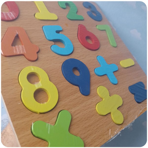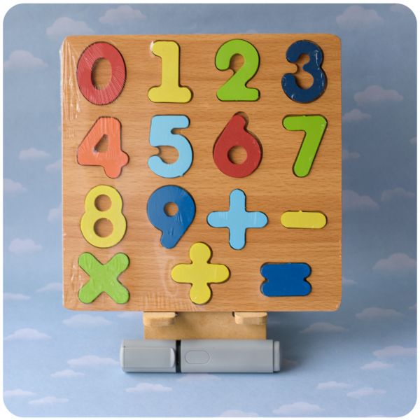 ¡Aprender a contar y sumar nunca fue tan divertido! Este tablero encastrable de madera es la herramienta perfecta para introducir los números del 0 al 9 y los signos matemáticos básicos.