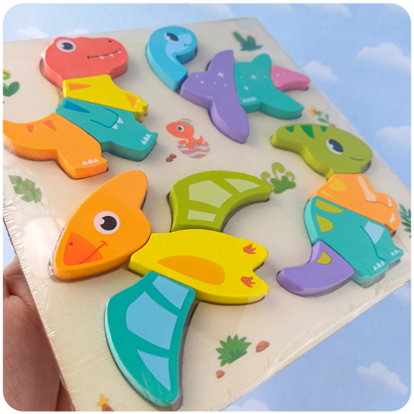 Con Dino Puzzle, los más chiquitos de la casa pueden viajar en el tiempo mientras arman a sus dinosaurios favoritos. Este tablero cuenta con 4 dinosaurios diferentes, cada uno diseñado con colores vibrantes y piezas fáciles de manipular. Al ser piezas con volumen, facilitan el agarre y permiten que el niño se concentre en lo más importante: ¡armar su propia aventura jurásica!