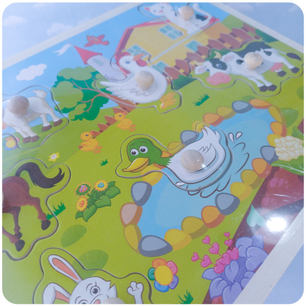 Descubrí el encanto de los Primeros Encastrables de Madera con Agarre, un juego ideal para que los más pequeños se inicien en el mundo del encastre mientras se divierten con escenas y personajes de la granja.