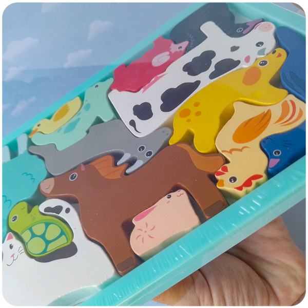 ✔ Reconocimiento de Formas: Refuerza la asociación visual de la silueta del animal con el hueco en el tablero.