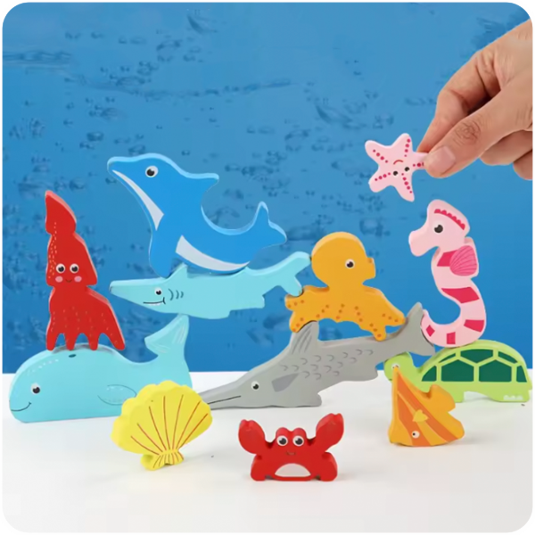 Sumergite en el mundo submarino con el Encastre de Madera de 12 Piezas – Animales Marinos, un juego educativo ideal para que los más pequeños desarrollen habilidades mientras se divierten.