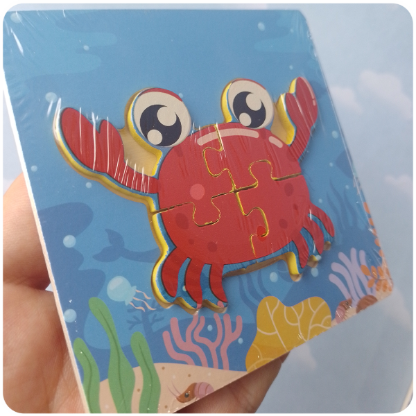Mini Rompecabeza Encastrable de Madera - 4 Piezas - Cangrejo