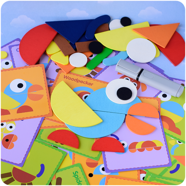 ¡Un desafío creativo y educativo! El Puzzle Montessori Fun invita a los más pequeños a armar simpáticos animales con piezas geométricas de madera, estimulando su imaginación y habilidades mientras se divierten.