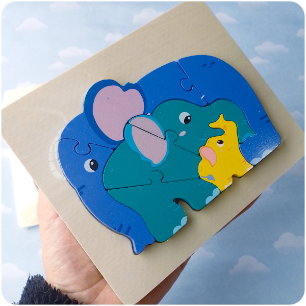 Un rompecabezas tierno y colorido que representa una familia de elefantes. Diseñado especialmente para los más chicos, con pocas piezas y formas simples para favorecer el aprendizaje desde los primeros años.