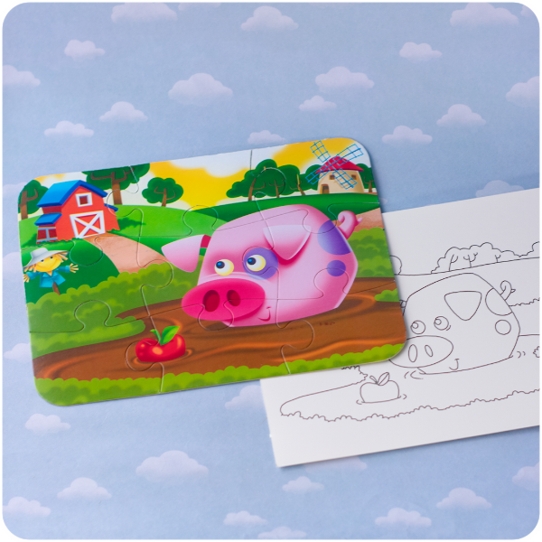 Este set incluye 3 rompecabezas progresivos con ilustraciones de distintos personajes de la granja, ideales para acompañar el crecimiento y desarrollo de habilidades paso a paso. Las piezas son grandes, pensadas especialmente para manos pequeñas. Además, se suman 2 láminas para colorear con los mismos motivos.