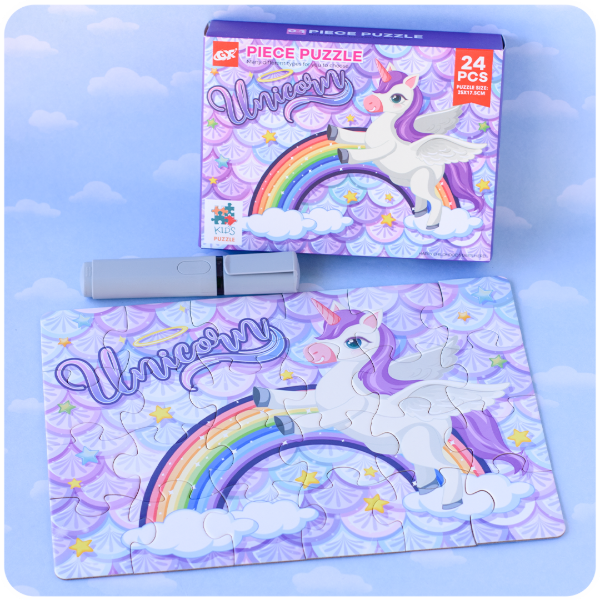 Rompecabezas de Cartón de 24 Piezas con temática unicornio!