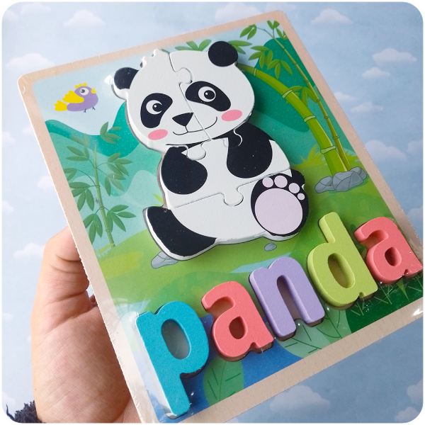 Este encantador rompecabezas de madera combina la diversión de encastrar figuras con el aprendizaje de letras y vocabulario.