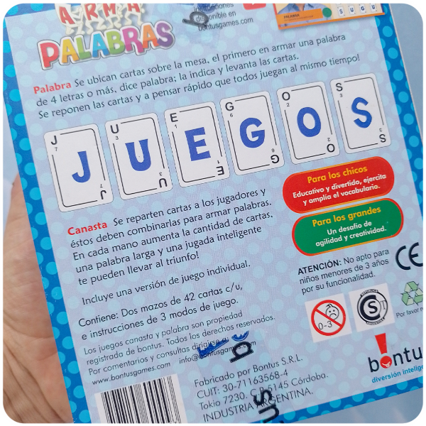 Arma Palabras es un dinámico juego de cartas que pone a prueba tu vocabulario y tu agilidad mental. Con tres modos de juego distintos, el desafío consiste en ser el más rápido en combinar letras para formar palabras. ¡Todos juegan al mismo tiempo! Su versatilidad lo hace perfecto tanto para partidas grupales llenas de adrenalina, como para desafíos individuales.