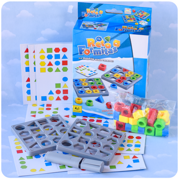 Reto de Formitas es un juego dinámico y adictivo donde la observación y la rapidez de manos son la clave. El objetivo es simple: toma una tarjeta de desafío y corre para ser el primero en colocar las piezas geométricas en tu tablero siguiendo exactamente el orden de colores y formas que indica la carta. ¡Un juego emocionante donde la diversión nunca termina!.