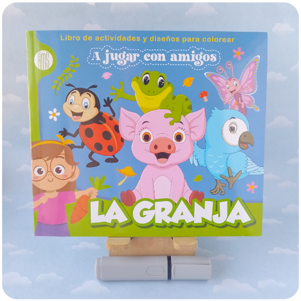 Este libro de HMS Ediciones invita a los niños a explorar la vida en la granja a través de actividades creativas. Es una propuesta integral que combina el dibujo con desafíos de ingenio, diseñada para entretener mientras se refuerzan habilidades de observación y lógica. Con ilustraciones de simpáticos animales como cerditos, ranas y mariposas, ofrece un entorno visual colorido y estimulante.