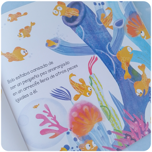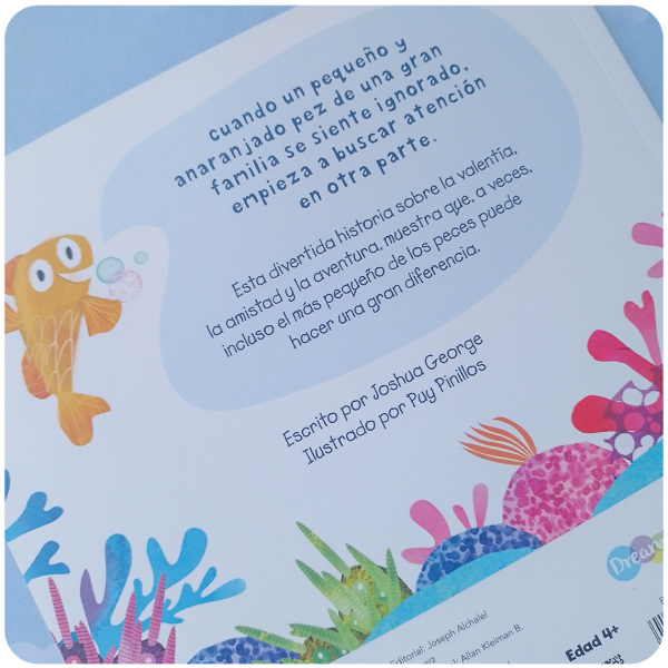 "Cuando un pequeño y anaranjado pez de una gran familia se siente ignorado, empieza a buscar atención en otra parte. Esta divertida historia sobre la valentía, la amistad y la aventura, muestra que, a veces, incluso el más pequeño de los peces puede hacer una gran diferencia".
