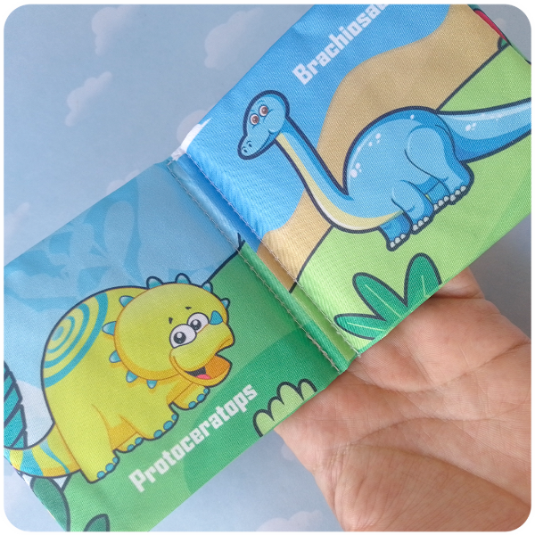 Este suave y seguro libro de tela es perfecto para los más pequeños, diseñado para estimular sus sentidos desde temprana edad. La temática es de Dinosaurios con ilustraciones coloridas. Sus páginas están rellenas con papel especial que produce un suave ruido al tacto (crinkle), capturando la atención del bebé y fomentando la exploración.