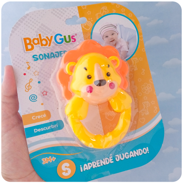 ¡Un compañero tierno y divertido para los más chiquitos! Este sonajero de Baby Gus con forma de león está diseñado para estimular los sentidos del bebé desde sus primeros meses. Con su carita simpática y colores vibrantes, invita a la exploración táctil y sonora, convirtiéndose en el aliado ideal para calmar y entretener al peque en cualquier momento del día.