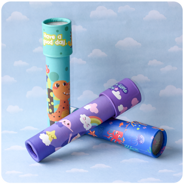 El Caleidoscopio es un juguete clásico que despierta la curiosidad y la fascinación por la óptica y el color. Al girar su cuerpo, pequeños fragmentos de color se reflejan en espejos internos, creando patrones geométricos y simétricos infinitamente cambiantes. Cada giro es una sorpresa, transformando la luz y el color en una experiencia visual mágica.