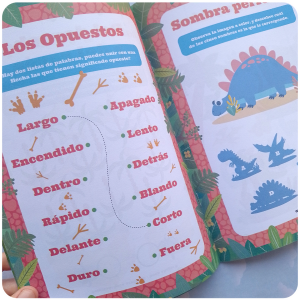 Este libro de HMS Ediciones Kids invita a los niños a sumergirse en el mundo de los dinosaurios a través de una propuesta didáctica y entretenida. Con ilustraciones coloridas y variadas, el material propone diferentes dinámicas que estimulan el ingenio y la observación, convirtiéndolo en una excelente opción para el tiempo libre.